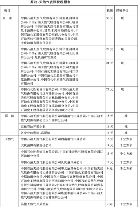 附件:原油、天然气资源税税额表