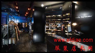 以蓝色和黑色为主调,营造着无尽创意及神秘感的氛围,启发顾客时尚触觉体验。简约而有品位的购物空间构造,很好的诠释了国际化的艺术风格,整体设计处处体现了现代都市新贵对细节的执著追求。位于都市时尚潮流的中心,顶级购物休闲的ShoppingMall……induhomme致力为顾客营造舒适的购物环境、提供热情专业的个人尊享服务,让每一位漫步induhomme店内的贵宾都仿佛置身时尚的魔幻空间,恣意每一刻的唯美心情。