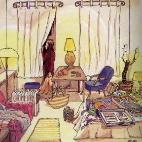 10月15日 阳光被不断飘过的云朵遮住,屋内的光线忽明忽暗. | |