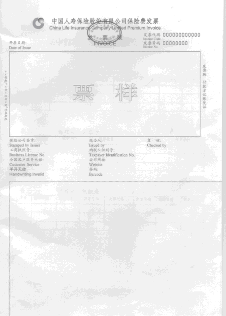 为了适应中国人寿保险股份有限公司(以下简称中国人寿保险公司)集中管理的需要,现就《中国人寿保险股份有限公司保险费发票》(以下简称《人寿保险费发票》)印制使用的有关问题通知如下: 一、《人寿保险费发票》启用时间 从2009年10月1日起,中国人寿保险公司在全国范围内启用《人寿保险费发票》,旧版的保险费发票同时停止使用。 二、发票式样、规格、内容 (一)《人寿保险费发票》采用白色80克A4静电复印纸,规格为297MM×210MM(票样见附件)。 (二)《人寿保险费发票》分上下两部分:上半部分为保险费发票;下半部分为公司打印项目。 (三)《人寿保险费发票》的印制内容包括:“中国人寿保险股份有限公司保险费发票”、“发票联”、“发票代码”、“发票号码”、“开票日期”、“保险公司签章”、“经办人”、“复核”、“工商执照号”、“纳税人识别号”、“全国客户服务电话”、“公司网址”、“手开无效”、“条码”。发票印制内容标有英文对照,发票左上角印有“中国人寿”标识。 (四)公司打印项目印制内容为空白。 (五)保险费发票为单联式(即发票联),电子存根存储在中国人寿保险公司的计算机系统中,数据应保存5年。 三、《人寿保险费发票》印制和集中打印程序 (一)《人寿保险费发票》由各省、自治区、直辖市和计划单列市地方税务局集中印制。中国人寿保险公司各省分公司应在每年5月底前或10月底前向主管税务机关报送印制计划。 (二)中国人寿保险公司各省分公司在每年7月底前或12月底前向主管税务机关领购《人寿保险费发票》,并将领购的发票送到指定的打印点。 (三)银行、邮政等代理机构在代办中国人寿保险业务时,可使用统一的《人寿保险费发票》。 四、其他事项 (一)《人寿保险费发票》暂用于中国人寿保险公司经营的各种保险。中国人寿保险公司使用的其他发票仍按原式样和方法实施,如有其他新的业务需求,可向当地主管税务机关提出申请。 (二)中国人寿保险公司指定开具《人寿保险费发票》的协议银行、邮政储蓄等代理机构名单,应于签订代开协议后15个工作日内交各分公司所在省、自治区、直辖市和计划单列市地方税务局备案。 (三)各地税务机关应严格按照统一的票样和要求印制《人寿保险费发票》,以保证统一出单、出票的准确性。 (四)税务总局简并票种、统一票样方案实施后,按照新的规定执行。 附件:1.中国人寿保险股份有限公司保险费发票票样(纸质) 2.集中打印保险业务保险费发票报表 国家税务总局 二○○九年七月七日 抄送:各省、自治区、直辖市和计划单列市国家税务局。 |