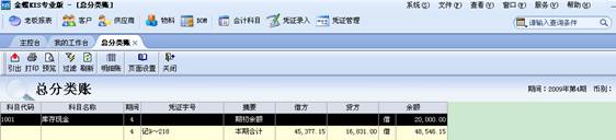 查询条件输入完毕后,单击【确定】,系统即按所设定的条件显示总分类账。系统会进入“总分类账查询”界面。在此界面中您可以对总分类账进行引出、打印预览,过滤,页面设置等项操作。